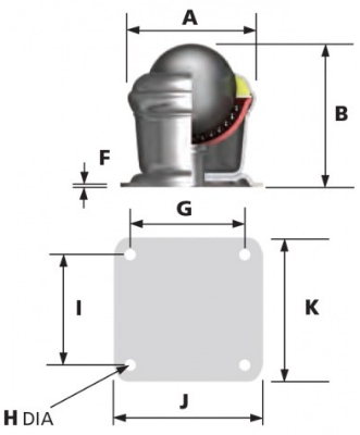 Possui raspador para minimizar a entrada de sujeira, e pode ser solicitada com um orifício para a saída de sujeira. Possui uma base com quatro furos de fixação.