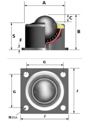 A esfera transferidora modelo 2019-24, possui esfera de carga de Ø39,7mme uma flange quadrada de 80 mm na