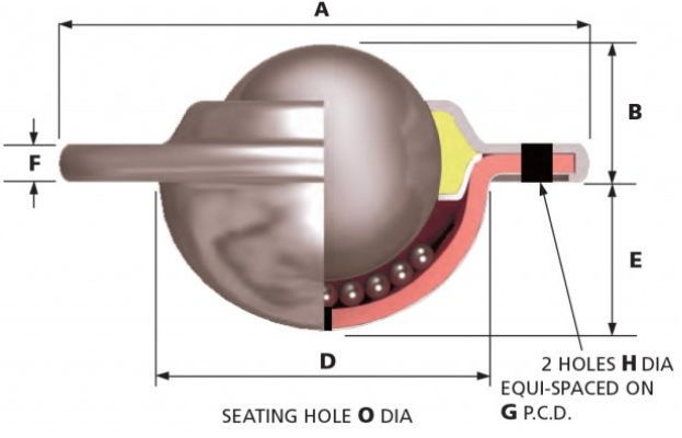 As esferas transferidoras modelo 0531, com esfera de carga Ø12,7 mm, podem ser fabricadas em aço carbono,
